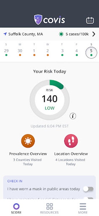 전 세계가 전염병을 앓고 있는 COVID-19 바이러스와 함께 CoVis는 자신과 다른 사람들이 감염되지 않도록 보호하는 필수 무기입니다. 감염된. 앱의 시스템이 계산하는 일일 및 위치 기반 위험 점수를 통해 추가 예방 조치를 취하고 감염을 피하기 위해 특정 사항을 피할 수 있습니다. 동시에 귀하가 공유한 개인 정보는 그들과 함께 안전합니다.