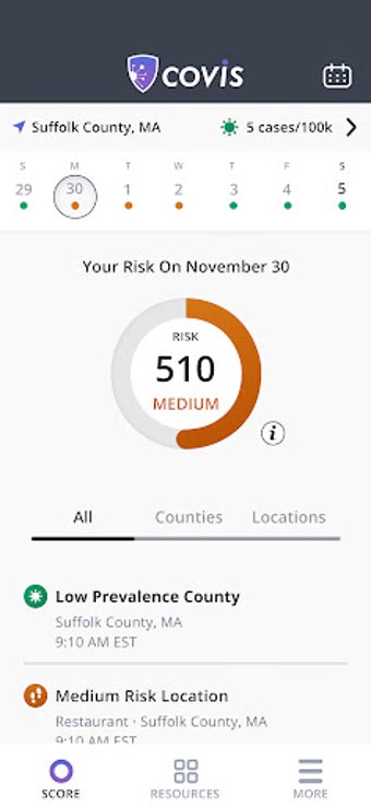 추적 코드 제로를 보장하므로 데이터가 100% 안전하고 보호됩니다. 사실, 그것은 심지어 당신의 전화와 프로그램의 데이터베이스 사이의 통신을 막는 산업 표준 보안을 구현합니다. 출시되면 위험 점수를 보여주는 대시보드가 즉시 표시됩니다. 방문한 모든 장소에 대해 상세한 위치 기반 위험 데이터도 표시됩니다.