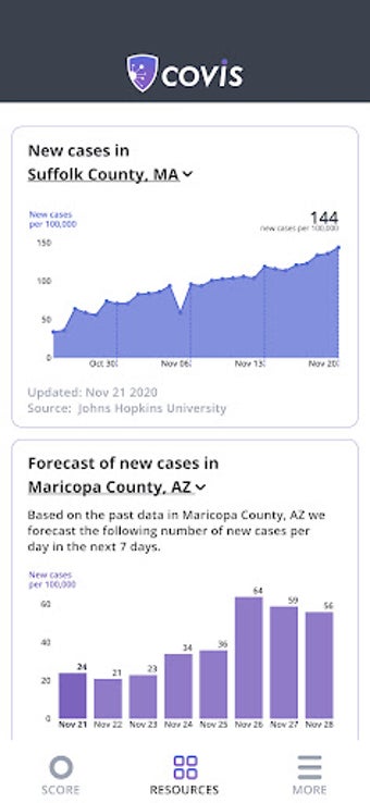 CoVis는 신뢰할 수 있는강력한 알고리즘으로 무장하고 있습니다. .softonic.com/android/medical"> 의학 문헌을 검색하고 전문가가 스캔하여 최신 과학적 결과를 이해하며, 이는 매일 스마트폰에 반영됩니다. 귀하가 제공한 개인 정보와 함께 애플리케이션 데이터베이스에서 가져온 글로벌 및 지역 정보를 기반으로 귀하의 COVID-19 감염 위험이 계산됩니다.